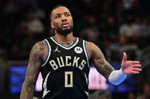 本场比赛,雄鹿球星利拉德表现不佳,尤其是上半场7中0一分不得,在36分钟的时间里,投篮14中3,三分球9中3拿到9分4篮板5助攻2抢断的数据,有4次失误。