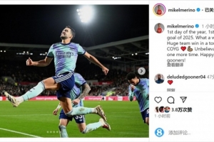 梅里诺在社交媒体上晒出自己庆祝的照片,并写道:“今年的第一天,2025年的第一场胜利和第一个进球。多么棒的开局!在艰难的球场取得了重要的团队胜利,又一次获得了球迷们令人难以置信的支持。新年快乐,枪迷们!”