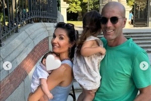 在恩佐-齐达内晒出的图片中,齐达内与妻子分别抱着恩佐的孩子,照片中的齐达内身穿绿色t恤,笑容可掬。