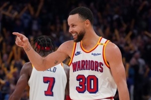 本场比赛,斯蒂芬-库里出场30分钟,15投11中,其中三分球8投8中,得到30分6篮板10助攻1抢断。