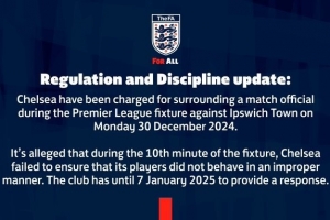 体育资讯1月3日讯 英足总官方宣布,切尔西因球员围堵比赛官员一事而受到指控,球队必须在1月7号之前做出回应。