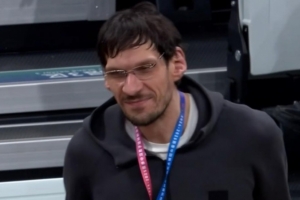 赛前转播方捕捉到出现在场边的广厦新援博班,他今天没有进入名单。