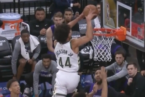 10、小安德烈-杰克逊在篮筐上吃饭,高筐一尺逆天“放”扣。