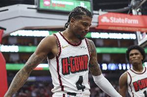 火箭球员杰伦-格林本场比赛在攻防两端都打得十分努力,他在第二节和第三节两度单节砍下10分帮球队追分。