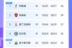 体育资讯01月04日讯 英超第20轮先赛一场,纽卡客场2-1逆转热刺取得5连胜,积分追平第4的切尔西;热刺近8轮英超仅取得1场胜利,仍居联赛第11,完整英超积分榜如图。
