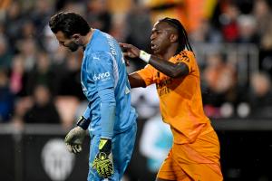 体育资讯1月4日讯 西甲第12轮补赛,皇马vs瓦伦。比赛第79分钟,维尼修斯倒地之后,瓦伦门将迪米特雷夫斯基过来让他起来,维尼修斯起身推倒瓦伦门将!裁判观看VAR后将维尼修斯罚下!