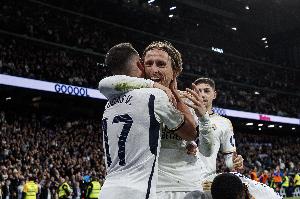 在本场比赛少打一人的情况下,替补登场的莫德里奇在第85分钟打进了关键的扳平进球,收获了个人赛季首球。