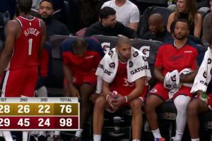 小卡第三节只打了前3分半,目前仅出战19分钟