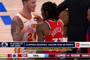 其中科菲17分、小琼斯12分、小波特15分、曼恩12分;转播方将快船替补席评为本场最佳