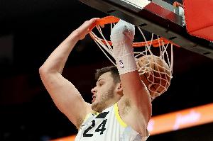 此役爵士中锋凯斯勒高效发挥,打了26分钟7投6中,罚球4中2拿到14分16篮板的两双,正负值+26。