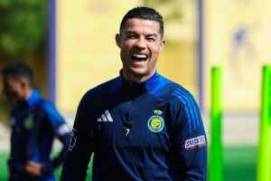 体育资讯1月6日讯 利雅得胜利官推今天晒球员训练照,C罗开怀大笑,看起来心情极佳。