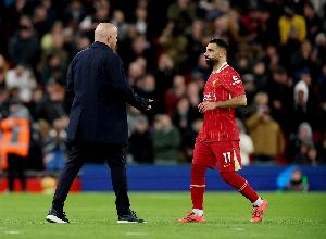 体育资讯1月6日讯 英超双红会,萨拉赫点射破门。