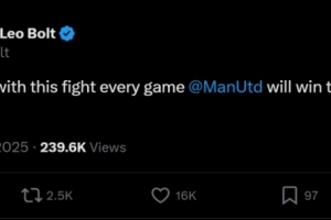 博尔特写道:“如果我们每场比赛都能踢出这样的斗志,曼联就会赢下联赛冠军。💯”