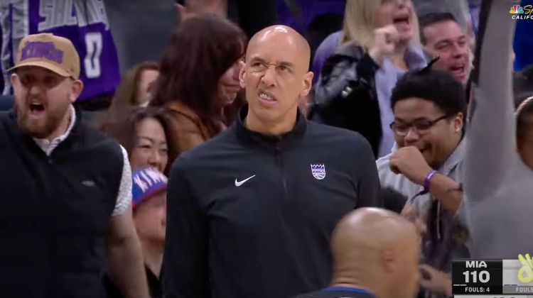 赛后,小萨博尼斯在社媒晒出了一张主教练克里斯蒂歪嘴的照片庆祝胜利。当时小萨刚刚命中一记关键三分助队反超。
