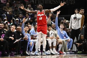 本场比赛,灰熊内线小贾伦表现出色,场上十分全能,拿到了生涯首次30+10+5,在34分钟的时间里,投篮23中13,三分球2中1,罚球12中8,拿到35分13篮板5助攻3抢断1盖帽的数据,正负值+9。