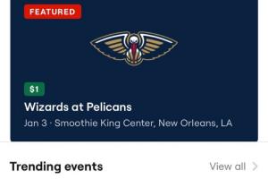此前1月4日(美国当地时间1月3日),鹈鹕主场132-120击败奇才的比赛,最便宜的票价来到了1美元。