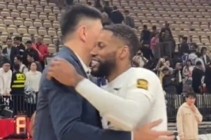 赛后,目前效力于深圳的周鹏、任骏威、威姆斯与广东队主教练杜锋和一众老队友亲切击掌、拥抱。