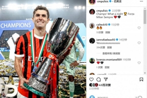 普利西奇赛后在社交媒体上晒出与奖杯的合照,配文:“冠军!多么美妙的夜晚🏆加油米兰,永远❤️🖤”