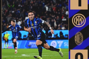 上半场补时1分钟,国米1-0米兰。