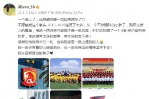体育资讯1月7日讯 广州队退出职业联赛后,队中多名球员陆续向球队发出告别。冯轶梵更新微博,在伤感球队解体的同时,也表达了自己的感激之情。