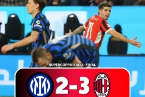 体育资讯1月7日讯 意超杯决赛,米兰3-2逆转国米第8次夺冠。本赛季,AC米兰已连续两次击败国米。