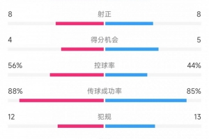 控球率——56%比44%