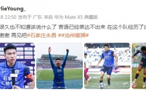 体育资讯1月8日讯 在准入资格尘埃落定之时,沧州雄狮最终无缘准入,就此退出职业联赛。得知消息后,旧将杨一鸣发出自己曾为这支球队效力时的照片,并向球队道别。