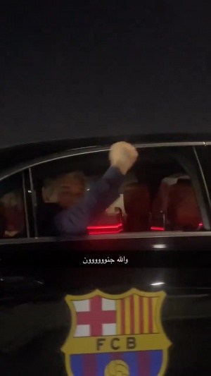 一些沙特球迷朝着拉波尔塔乘坐的车子大喊“巴萨”,拉波尔塔则伸出大拇指“点赞”、振臂回应。