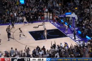 比赛最后时刻,特雷-杨后场超远三分出手直接压哨绝杀,创造了NBA历史第七远(14.95米、49英尺)的压哨绝杀球,仅次于格拉汉姆(18.6米)、斯特鲁斯(17.99米)、穆罕默德-阿布杜尔-拉乌夫(16.77米)、朱利叶斯-欧文(16.17米)、泰瑞克-埃文斯(15.25米)和伯鲁斯-斯马维利(15.25米)。