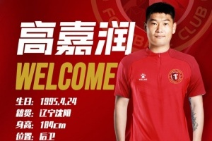 体育资讯1月9日讯 辽宁铁人俱乐部官方宣布,球队正式与后卫高嘉润签约。